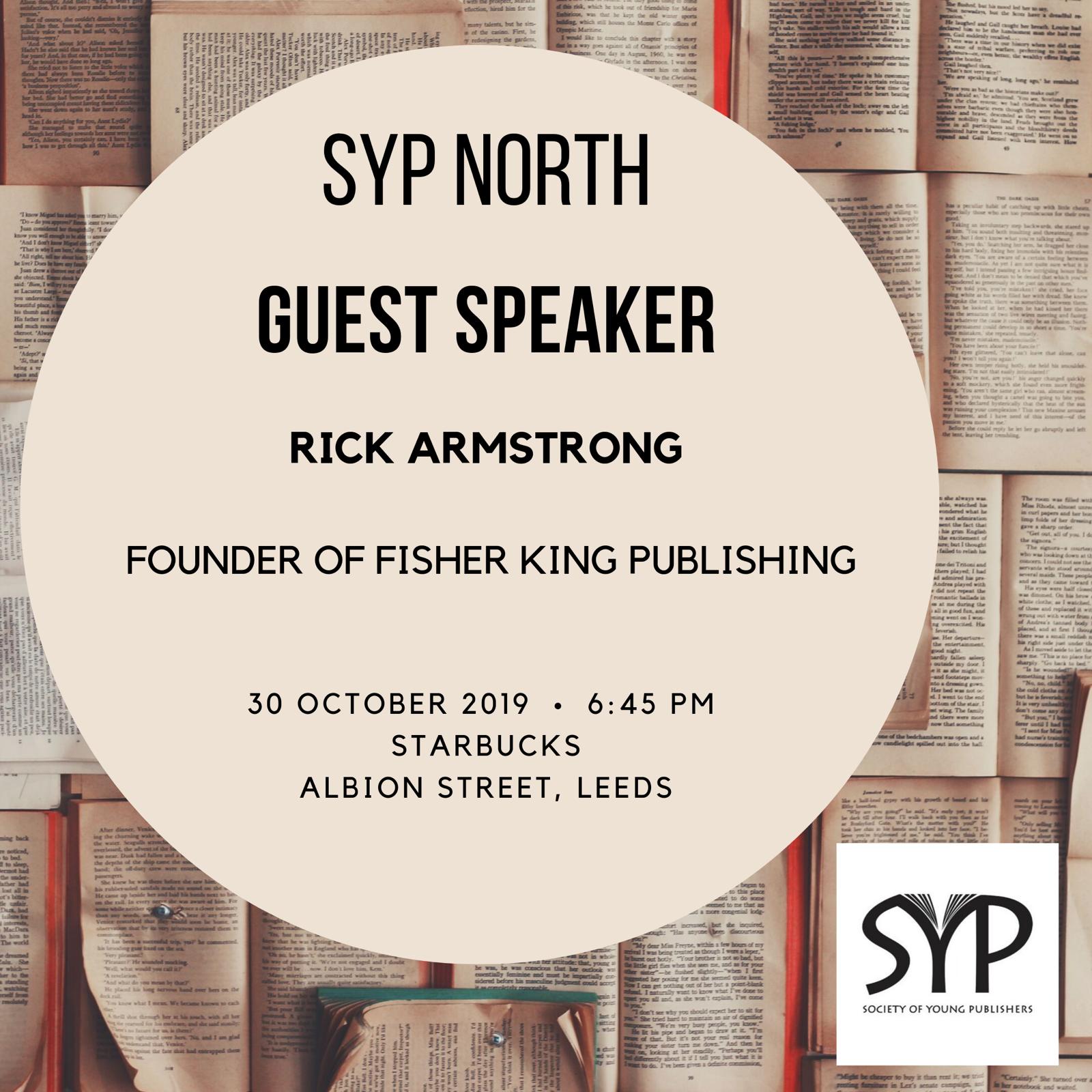 Join us on Wednesday 30th October at 6.45 where Rick Armstrong, founder of Fisher King Publishing will be discussing the founding of Fisher King Publishing, his work history and his thoughts on publishing. The talk will have a Q+A at the end.