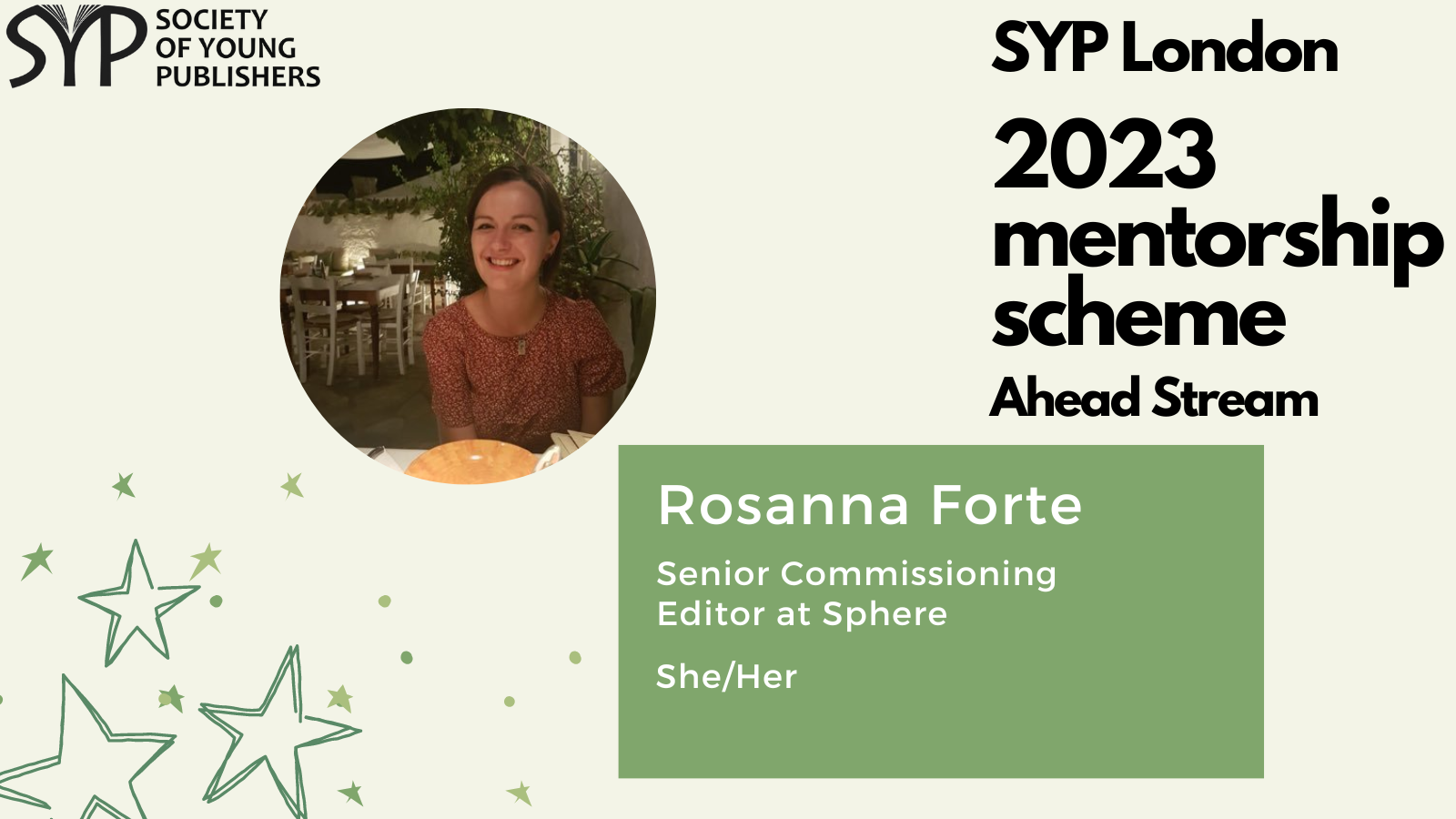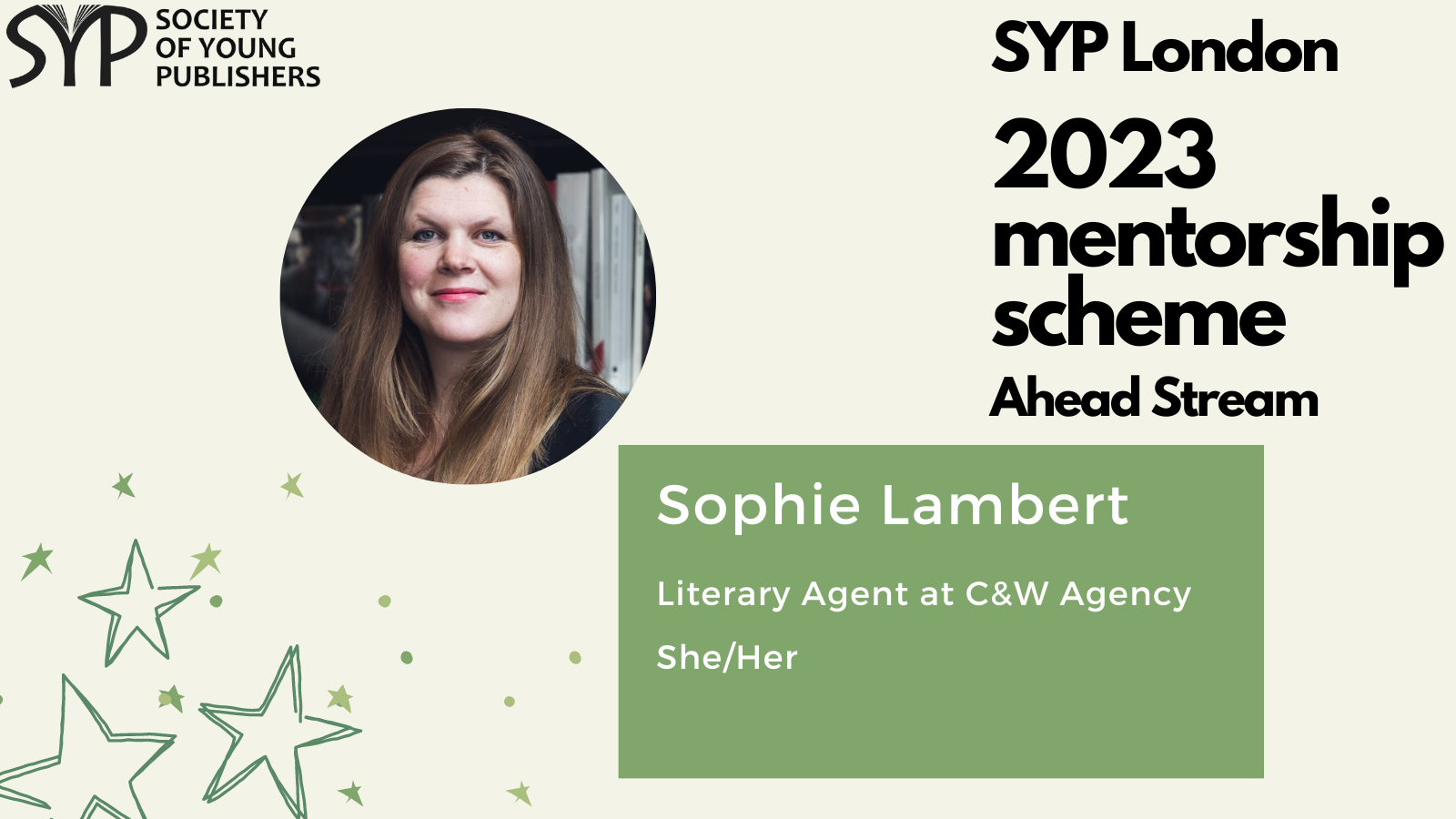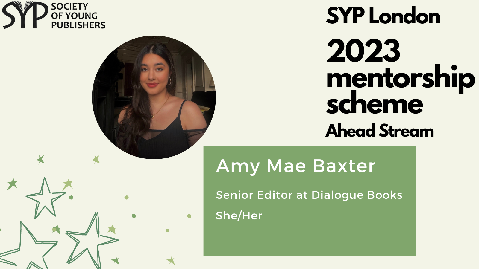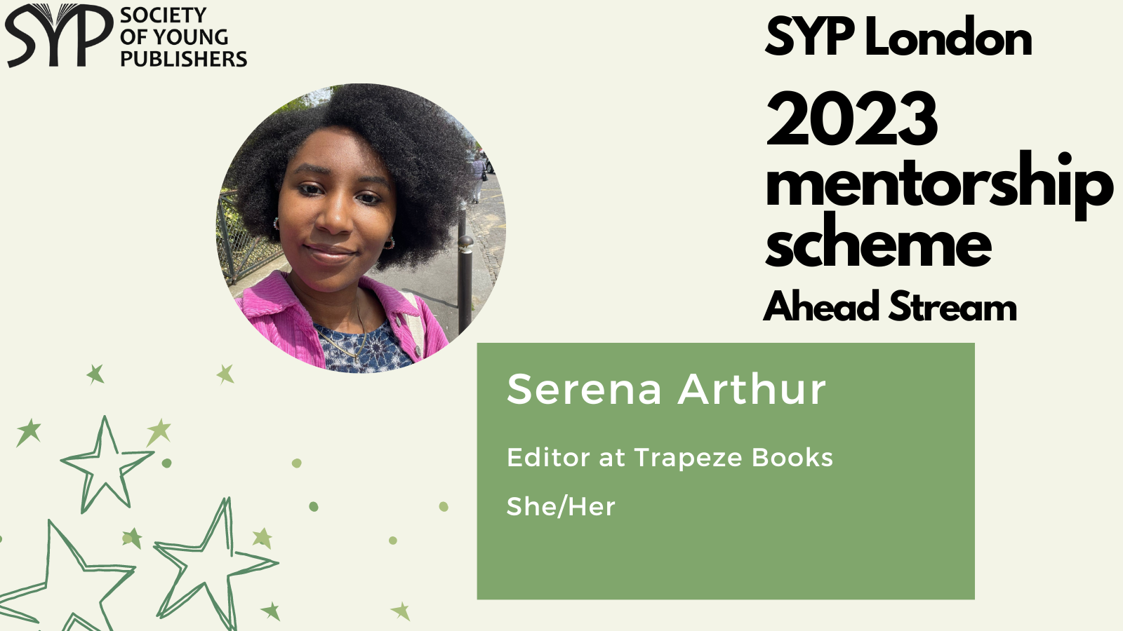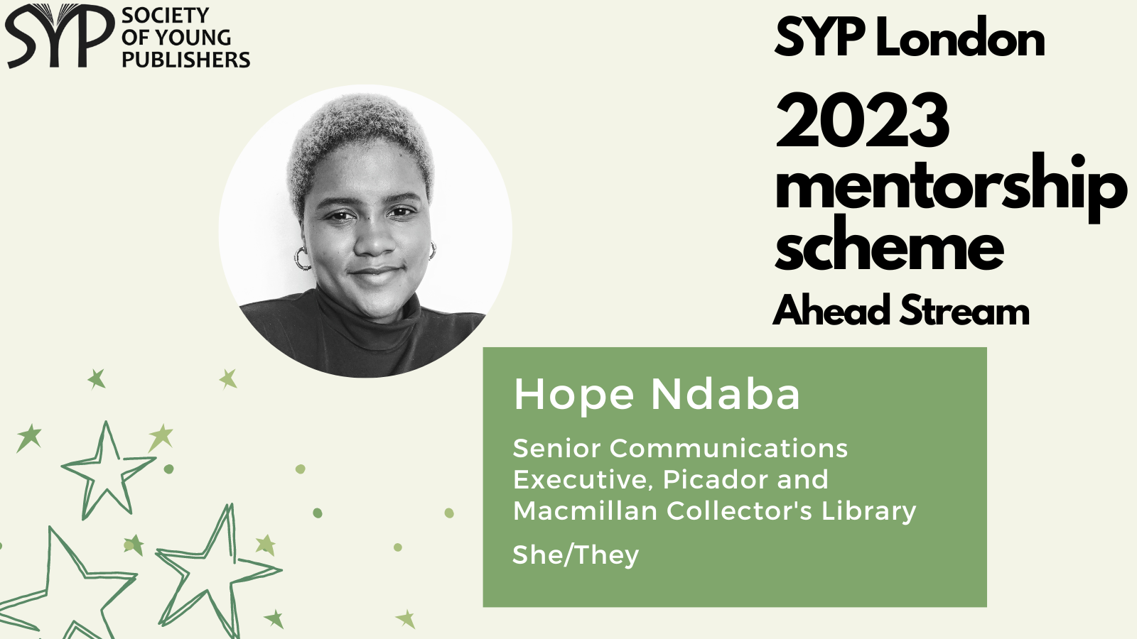 SYP London is delighted to introduce the mentors for the 2023 SYP London Ahead stream, which is dedicated to helping those already working in the publishing industry and hoping to take the next step. The mentorship scheme is a fantastic opportunity to receive personalised, structured career guidance from publishing experts, learn more about the industry and work on the key skills needed to progress within it.