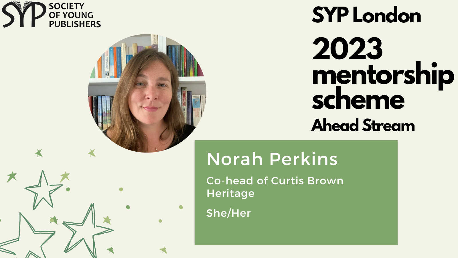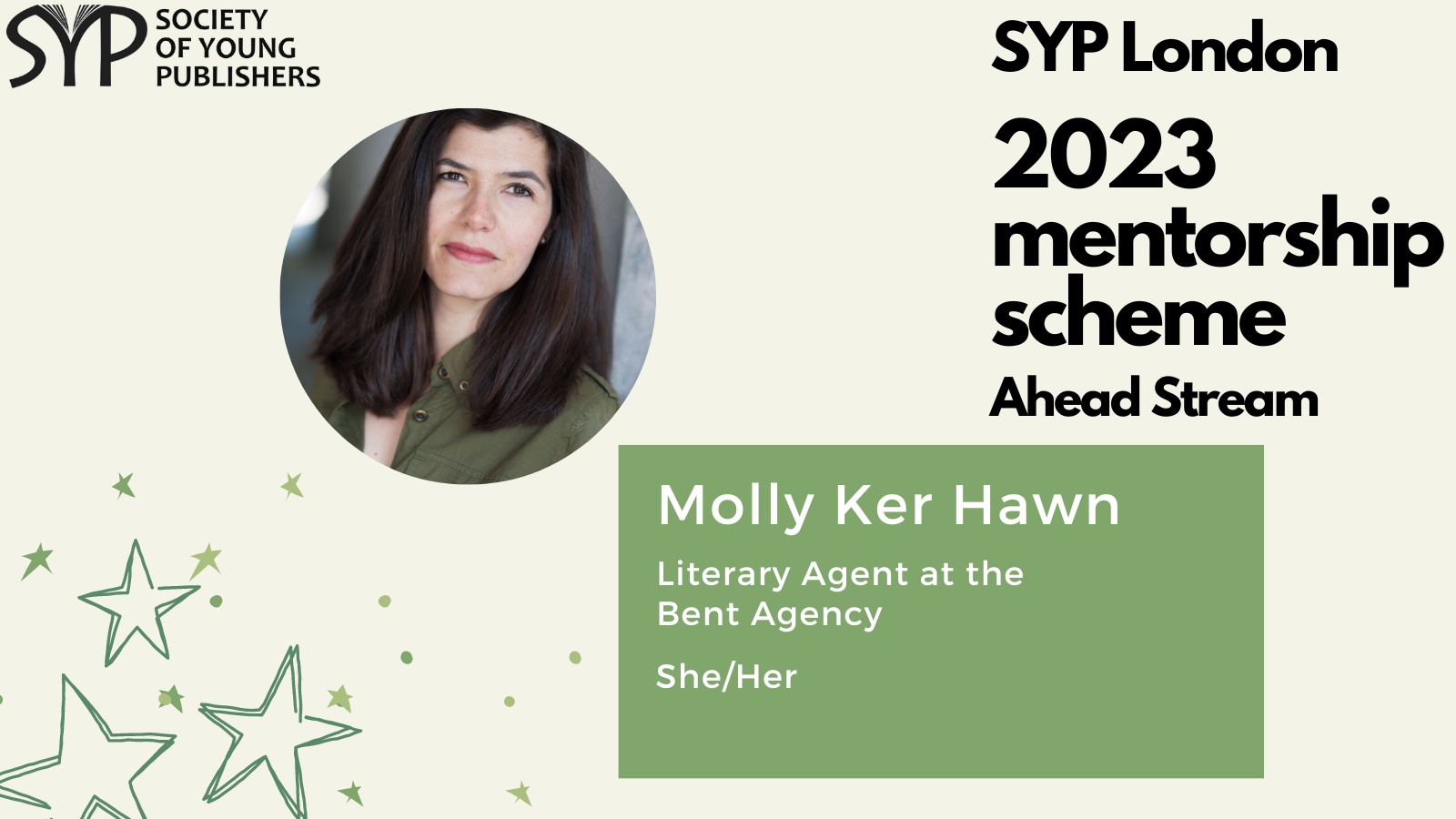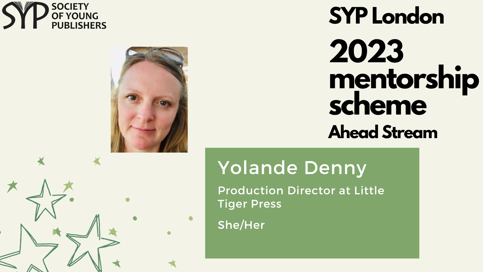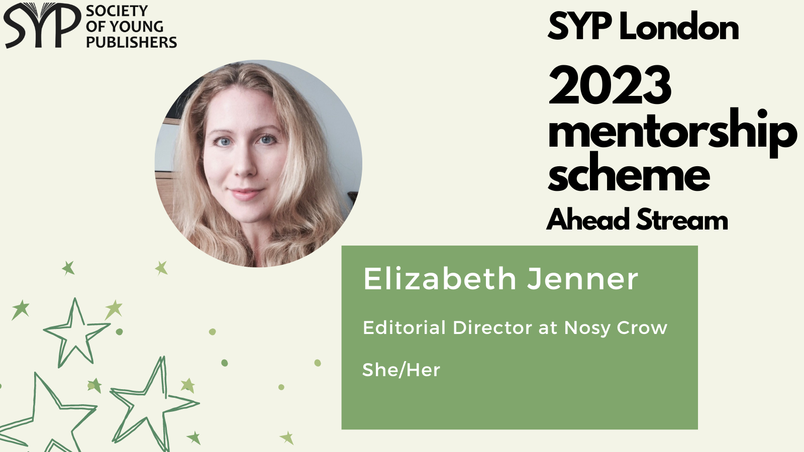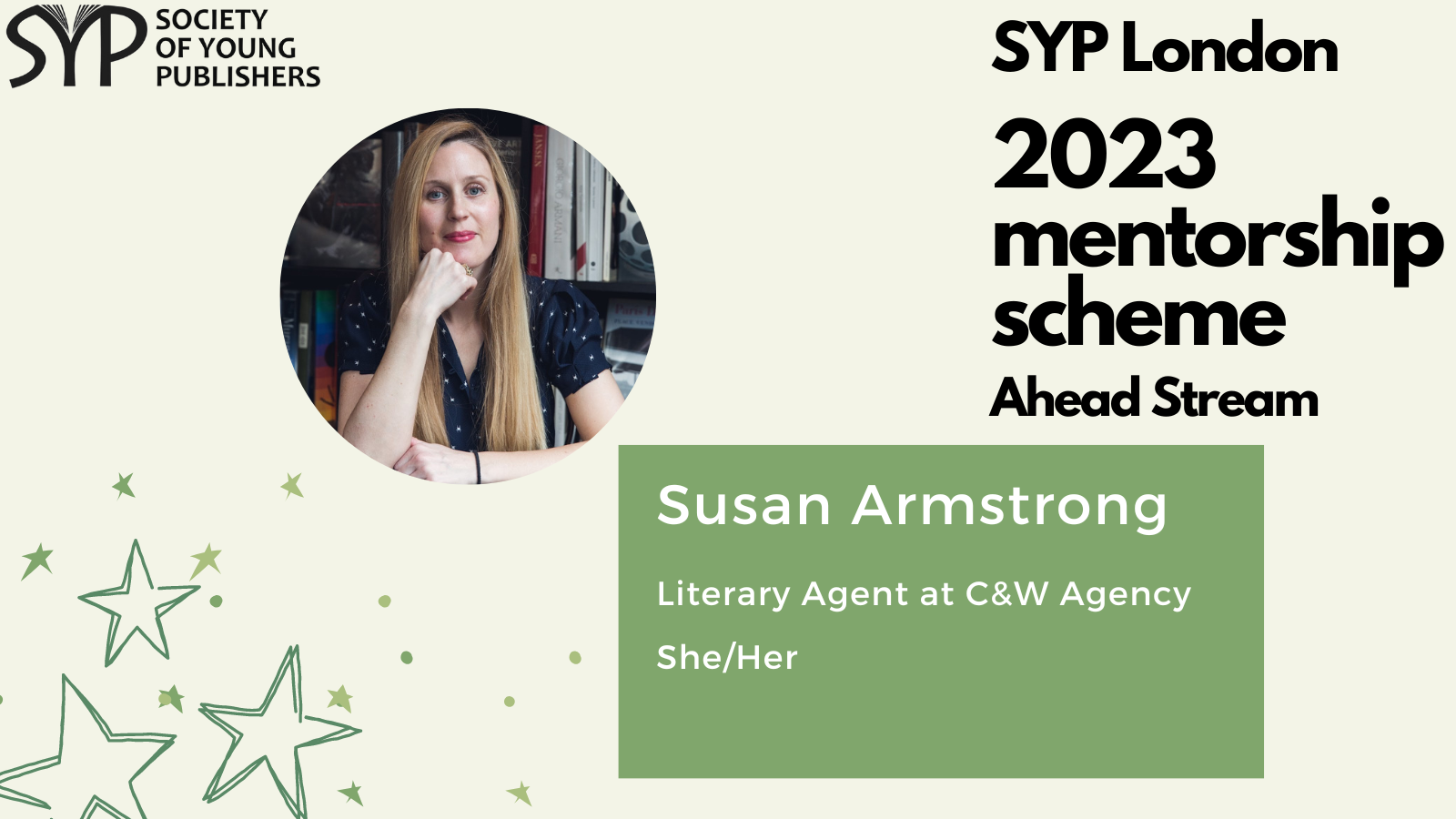 SYP London is delighted to introduce the mentors for the 2023 SYP London Ahead stream, which is dedicated to helping those already working in the publishing industry and hoping to take the next step. The mentorship scheme is a fantastic opportunity to receive personalised, structured career guidance from publishing experts, learn more about the industry and work on the key skills needed to progress within it.
