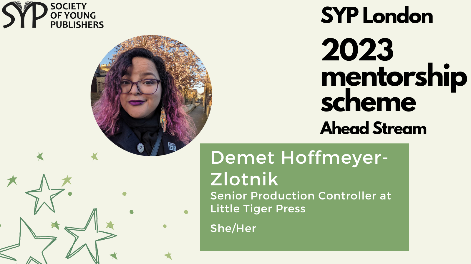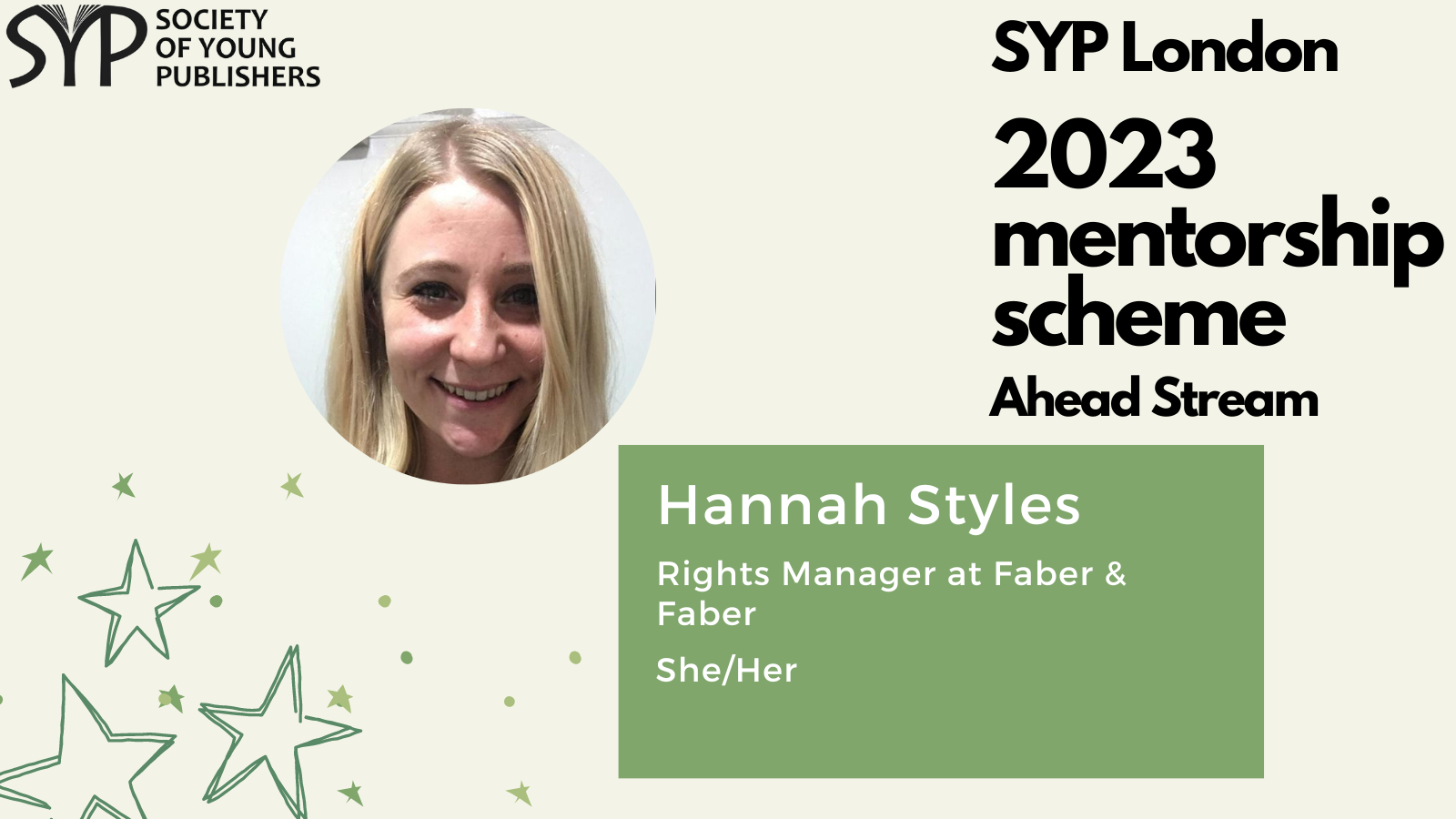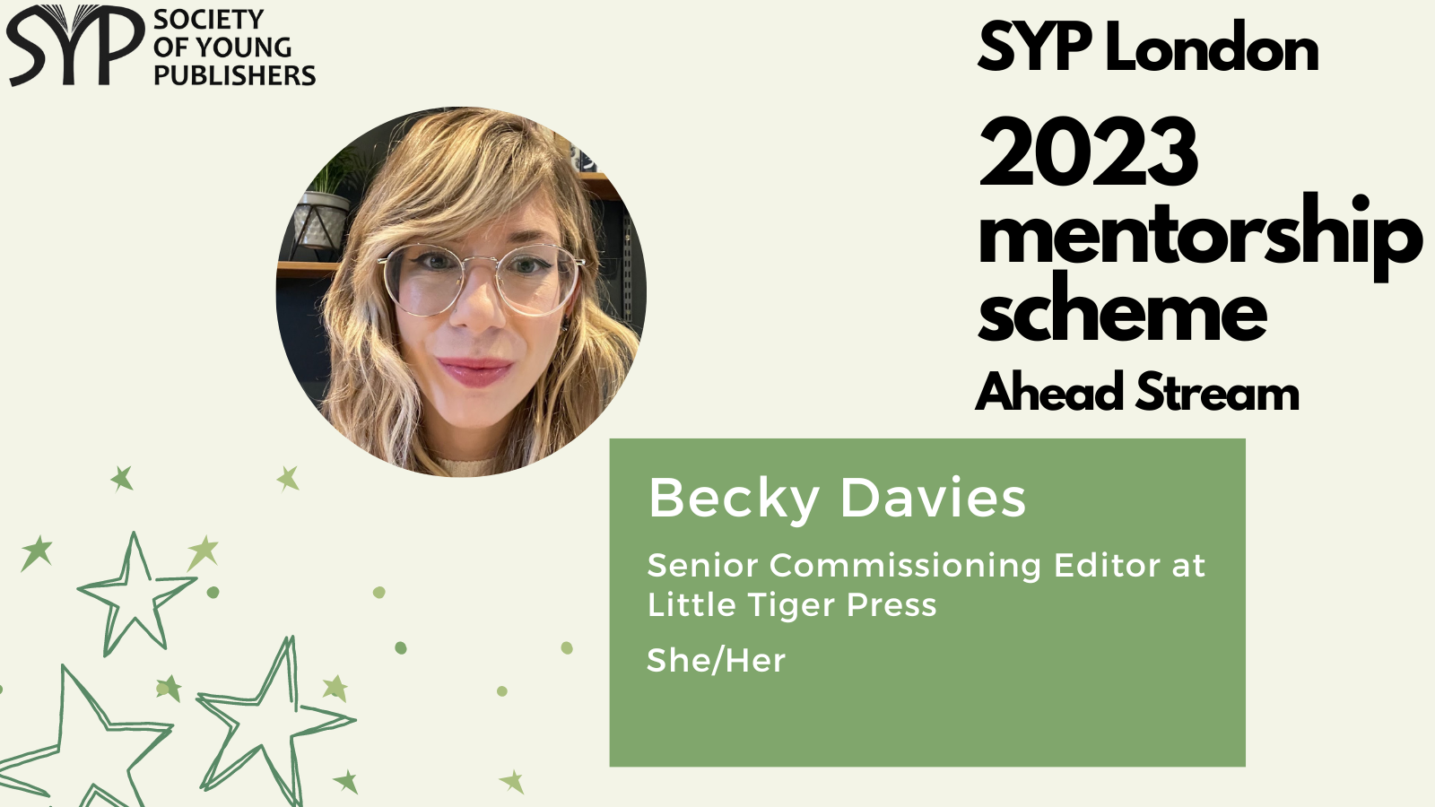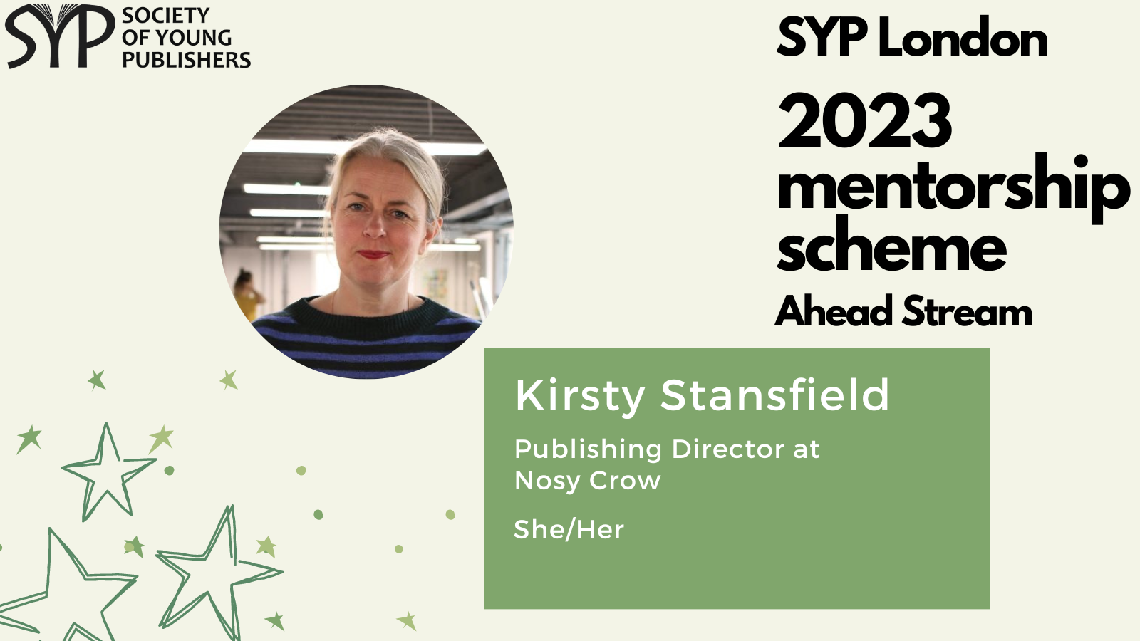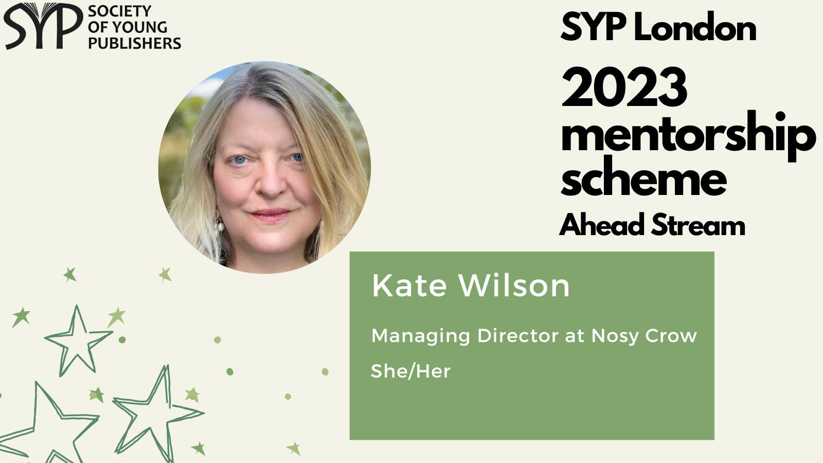 SYP London is delighted to introduce the mentors for the 2023 SYP London Ahead stream, which is dedicated to helping those already working in the publishing industry and hoping to take the next step. The mentorship scheme is a fantastic opportunity to receive personalised, structured career guidance from publishing experts, learn more about the industry and work on the key skills needed to progress within it.